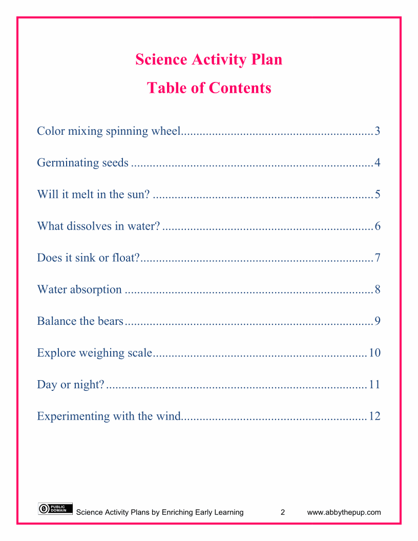 Science Activity Plans (12p)